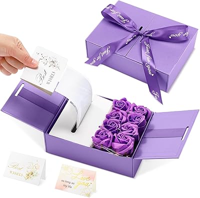 Resholder Valentines Day Money Pull Box for Cash Gift Birthday Money Pull out Gifts with 8 Rose 2 Greeting Card 1 Light String for Mom Husband Wife Anniversary ChristmasPurple
